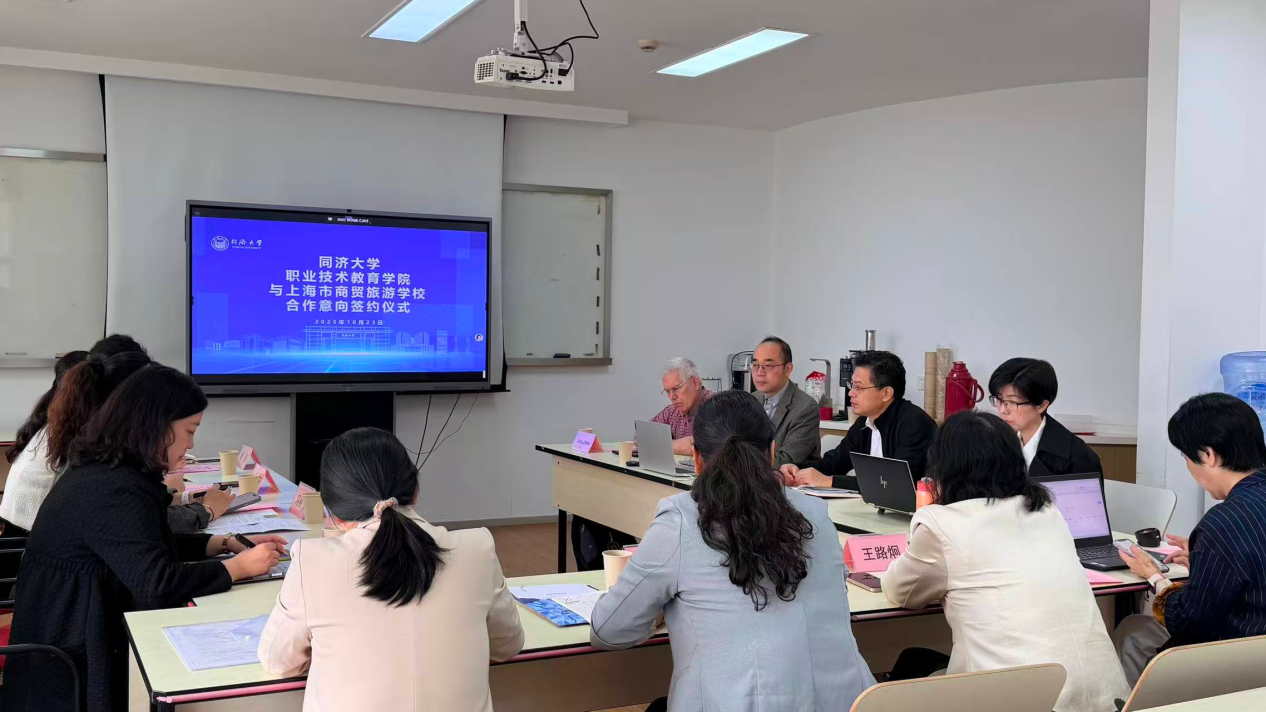 10月23日,同济大学职业技术教育学院与上海市商贸旅游学校合作意向签约仪式在同济大学举行。