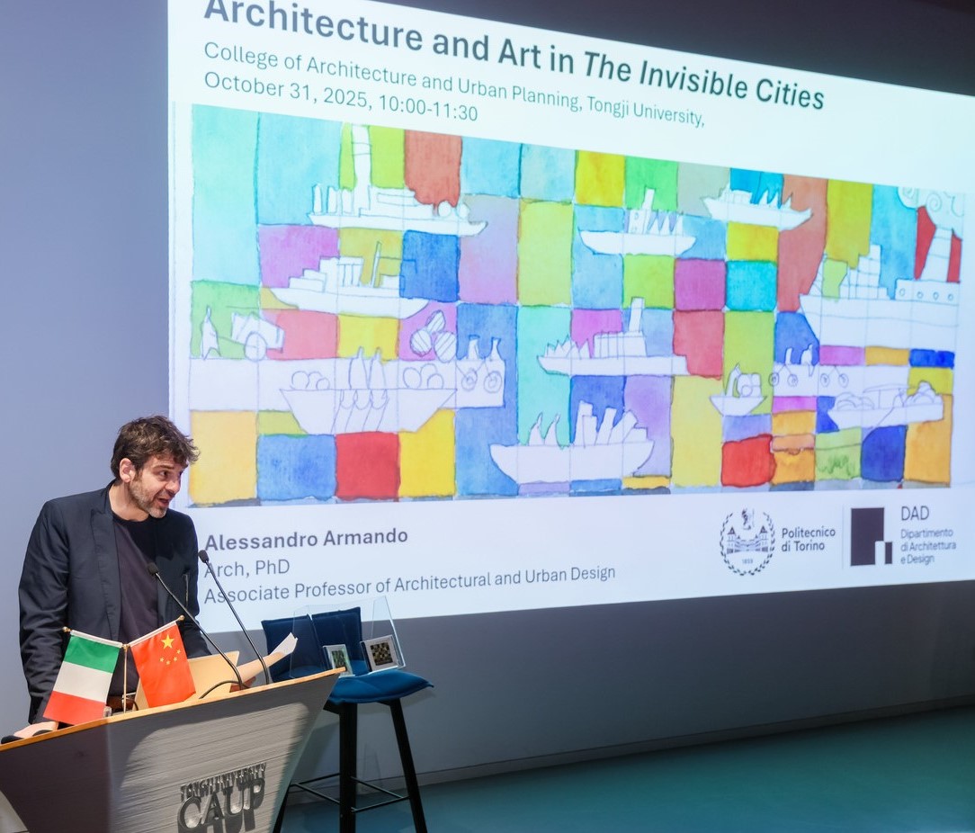10月31日,“文本建筑:‘看不见的城市’立体阅读”中意学术文化活动在建筑与城市规划学院举行。作为2025中意创新周系列活动之一,活动由同济大学中意学院、意大利研究中心、建筑与城市规划学院、艺术与传媒学院、意大利驻沪总领事馆文化处、意大利都灵理工大学建筑与设计学院共同举办,以“看不见的城市”为主题,邀请来自不同领域的中意专家学者通过多元文化语言形式,共同解读城市的发展与关系脉络,吸引了近百名中外师生参与。