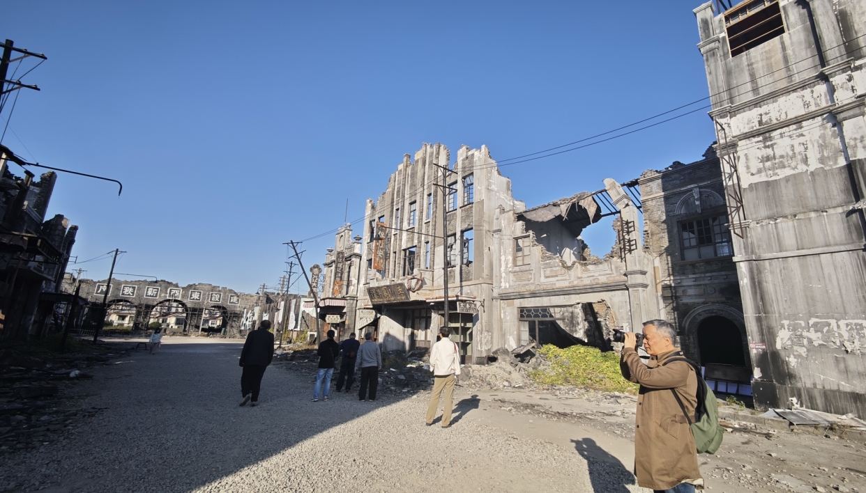 在车墩,老师们走进电影《南京照相馆》拍摄地重温抗战记忆。该场地1比1复刻了抗战时期的南京街区,包括吉祥照相馆、南京邮局等核心场景,真实还原了被轰炸后的城墙残垣,揭露了日军侵华罪行。站在复原的中华门城墙下,老师们深切感受到那段历史的伤痛和同胞的苦难,进一步坚定了国家富强、民族复兴的信念。