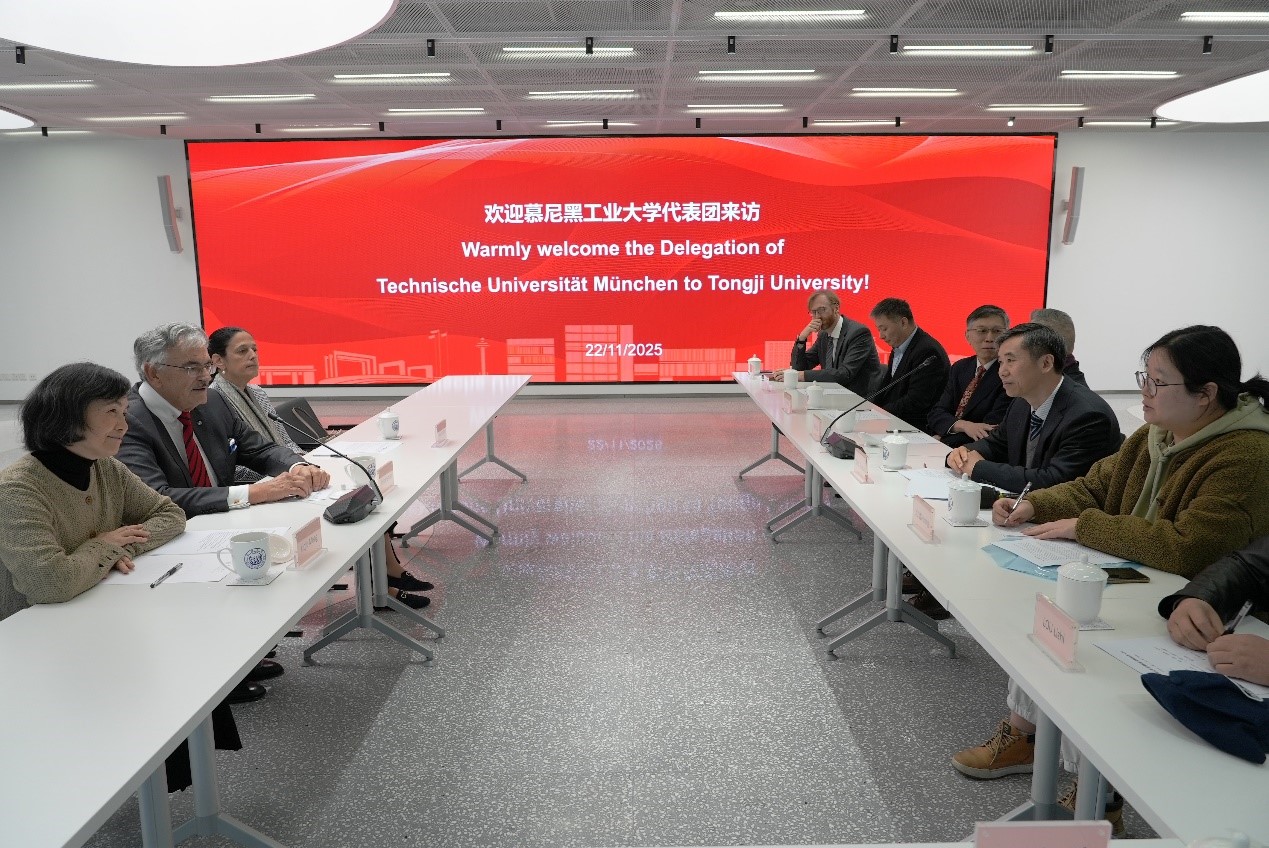 会上,双方围绕深化应用型工程人才培养合作进行深入交流。童小华介绍了同济大学近年来在人工智能赋能学科转型方面的进展,以及系统引入德国应用科学大学培养卓越工程师成功模式的规划,在智能制造、信息技术、数字经济等领域加强国际化复合型技术人才培养的举措。赫尔曼对此表示高度赞赏,分享了慕尼黑工业大学建设海外校区、推动产教融合的经验,并就师资队伍建设、中德学院转型升级、本硕博贯通培养等方面提出了建设性意见。双方一致认为应进一步强化德国特色,优化对德合作生态系统,推动中德学院、中德工程学院及中德博士生院资源共享,构建“一站式”对德合作人才培养体系。
