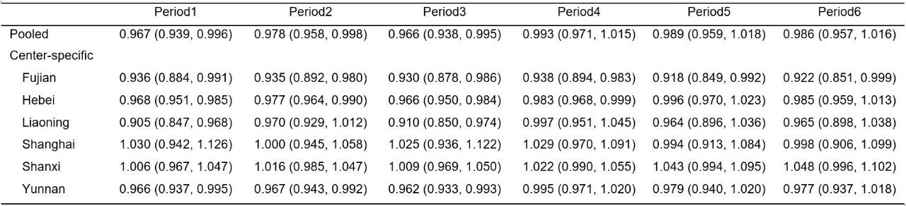 表1. 各中心及合并分析中不同暴露时间窗口PM2.5浓度与IVF活产结局的关联
