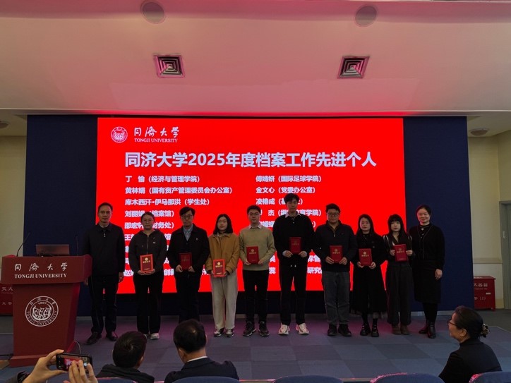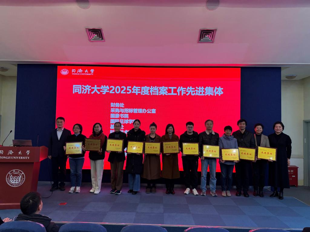 大会表彰了基建处等11家2025年度同济大学档案工作先进集体和丁愉等18位2025年度同济大学档案工作先进个人。