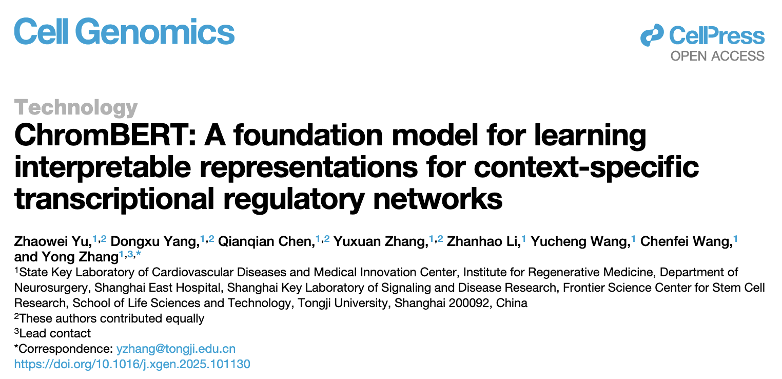 生命科学与技术学院张勇课题组构建染色质调控基础模型ChromBERT,成果发表于《细胞基因组学》