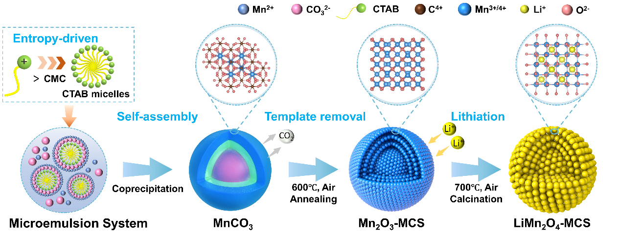 全球可持续能源转型对锂资源需求迫切,基于尖晶石型LiMn₂O₄(LMO)的电化学锂提取技术极具潜力,但循环过程中各向异性体积变化引发的应力累积和机械降解严重限制其应用。近日,环境科学与工程学院张亚雷、褚华强教授团队在国际权威学术刊物《美国科学院院刊》(PNAS)上发表了题为“Stress-homogenized spatial architectures via entropy-driven self-assembly enabling high-performance and durable lithium extraction”的研究论文。研究提出熵驱动两亲自组装策略,构建应力均化的多层核壳LMO架构(LMO-MCS),通过调控内部几何结构优化应力—应变行为,协同提升离子分布均匀性、传输动力学和电化学稳定性。