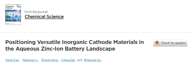 近日,化学科学与工程学院刘明贤教授团队对水系锌电池无机正极材料的研究进展进行了系统总结,综述论文“Positioning Versatile Inorganic Cathode Materials in the Aqueous Zinc-Ion Battery Landscape”在线发表于国际化学领域知名期刊《化学科学》(Chemical Science)。