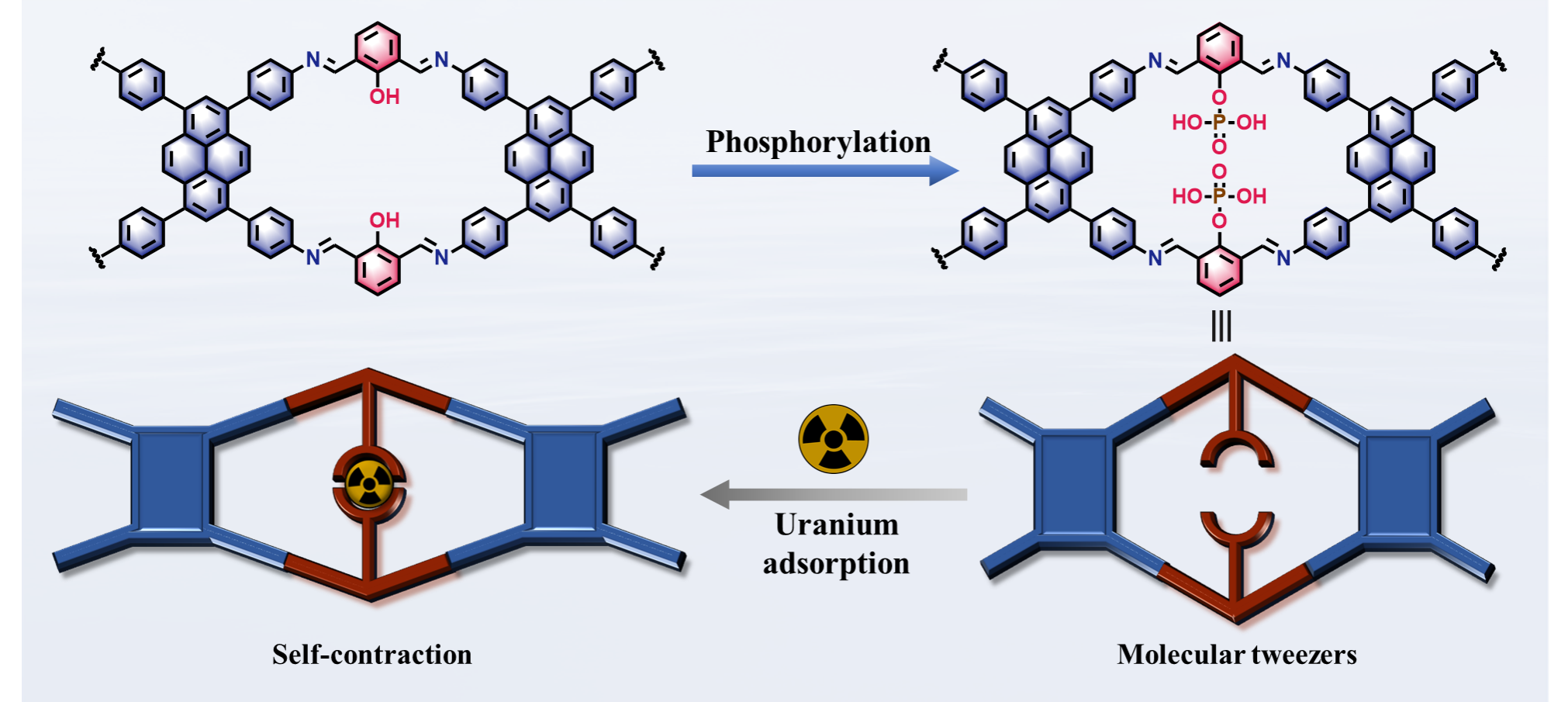 化学科学与工程学院闫冰团队基于一维共价有机框架(1D COFs)内部位点设计构建磷酸盐分子镊子,实现对铀的高效特异性捕获,成果发表于《先进功能材料》