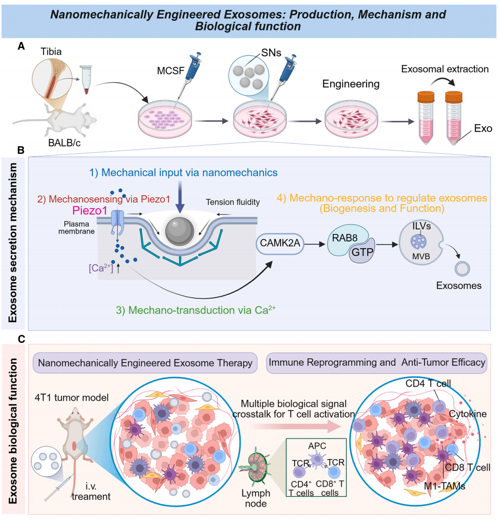 该研究建立了“纳米力学外泌体工程化”研究范式,为力学调控外泌体免疫生物学提供了基础性见解,并为精准外泌体治疗提供了蓝图。