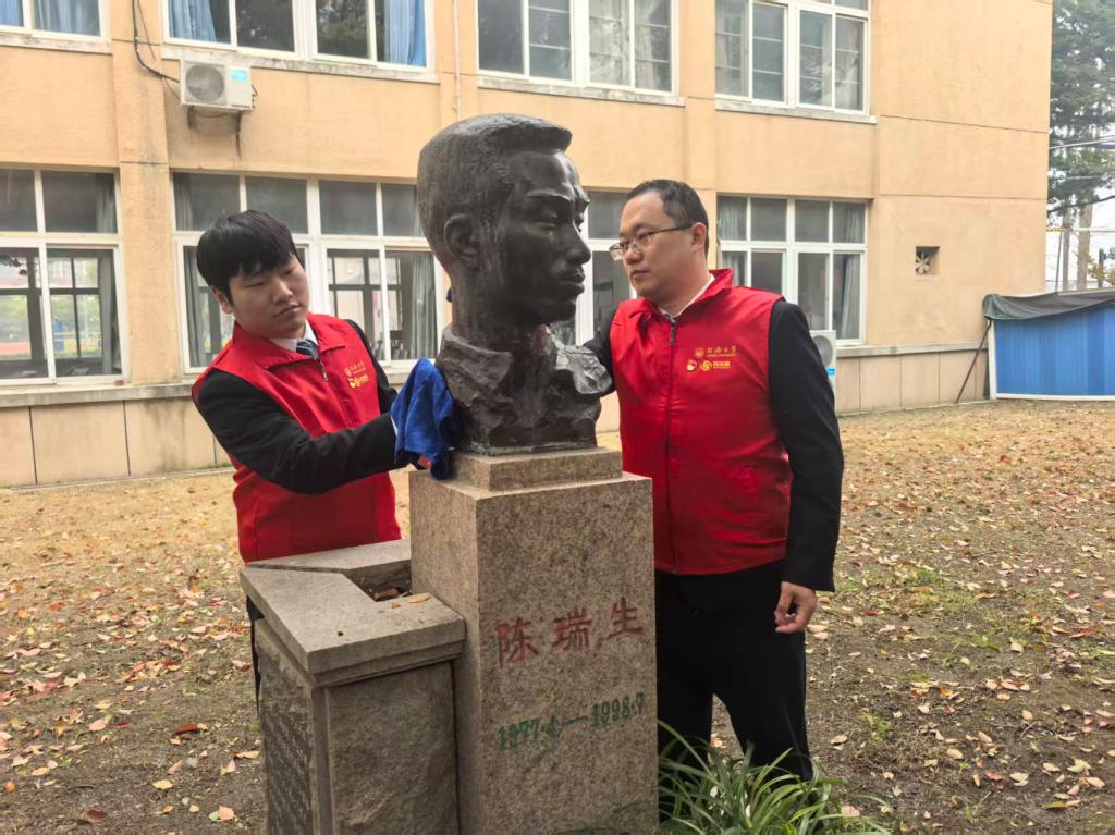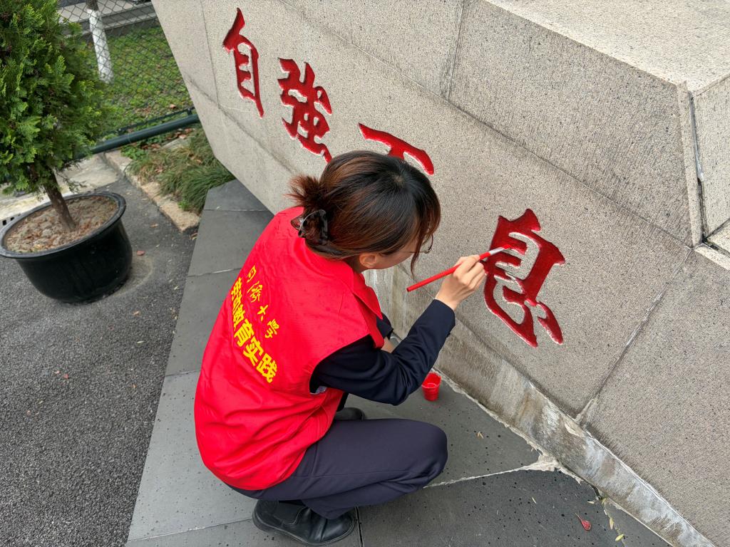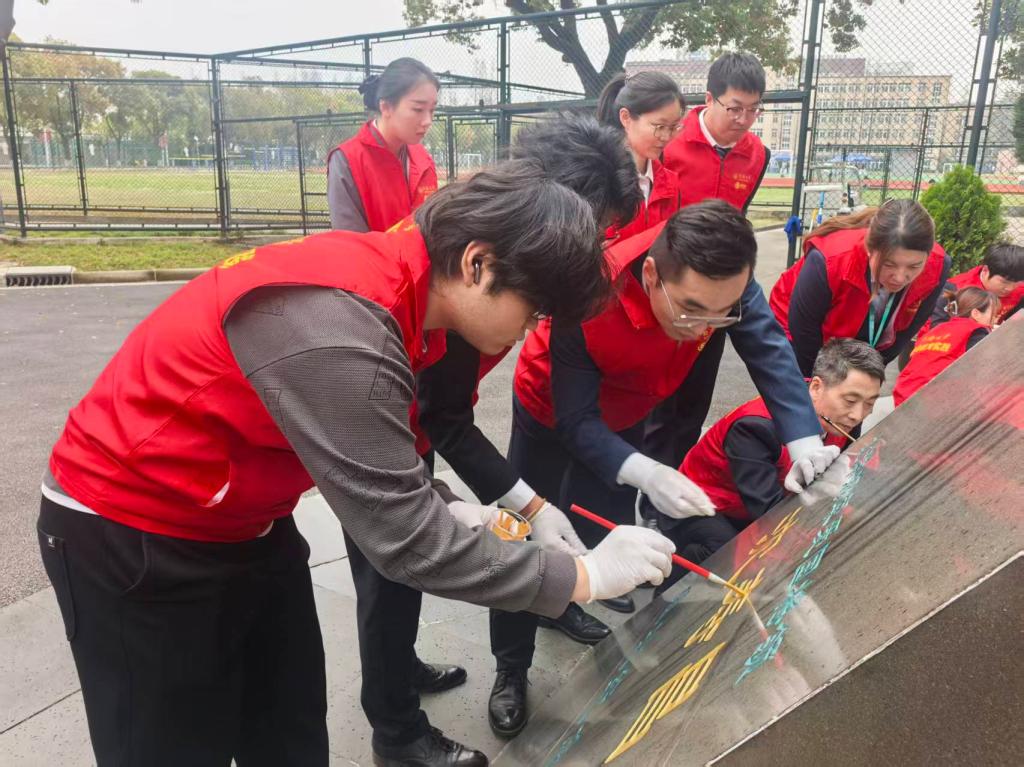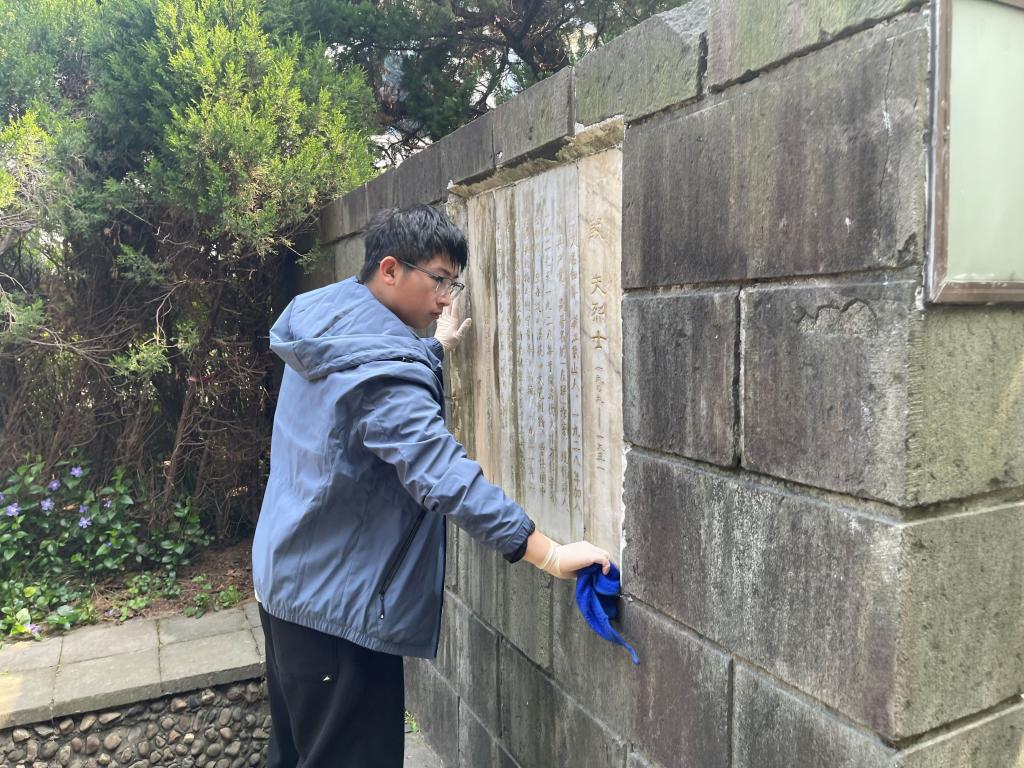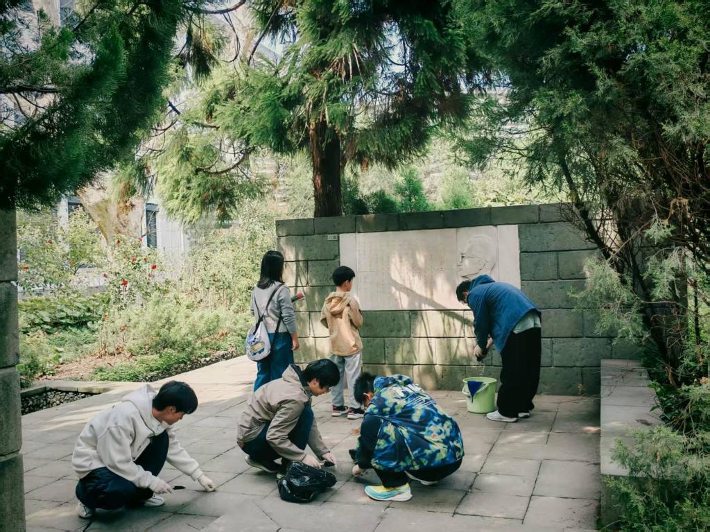 3月31日,一场将劳动教育与校史教育、爱国主义教育紧密结合的劳动育人主题活动在沪西校区举行。20多位师生代表手持扫帚、抹布、毛笔与油漆等工具,怀着崇敬之心,分别对校区内3处不同时代的英烈墓址进行了细致维护。大家分工协作,有的轻轻扫去四周的落叶,有的仔细擦拭墓碑上的浮尘,有的则小心翼翼地用毛笔对碑文进行“描红”修复。通过身体力行的劳动和触及灵魂的教育,师生们触摸历史、感悟初心,将英烈精神与家国情怀深深植根心底。