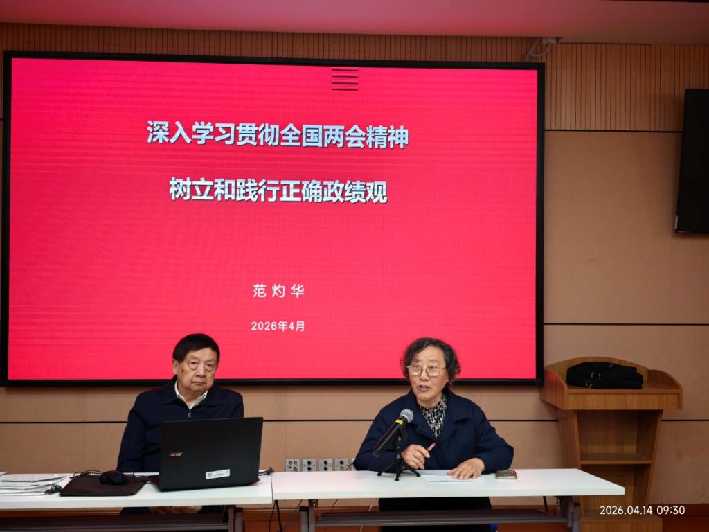 4月14日,同济大学老教授协会和退教协在同济新村老年活动中心举办专题报告会,特邀同济大学党校原常务副校长、上海市形势与政策教育研究会原副会长范灼华教授以《深入学习贯彻全国两会精神,树立和践行正确政绩观》为题作深入解读。协会理事、会员近50人聆听了报告。