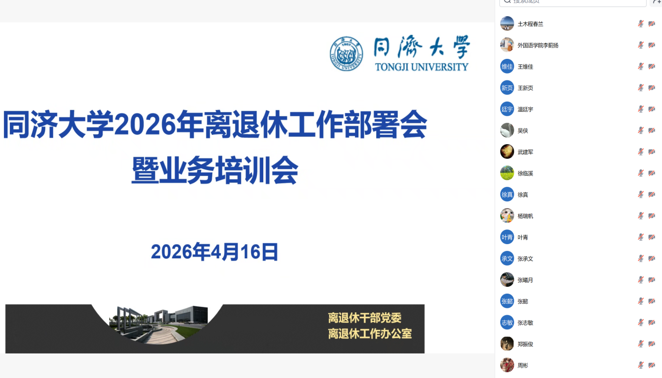 4月16日,离退休工作办公室在线召开2026年离退休工作部署会暨业务培训会,传达落实上级部门和学校工作部署,统筹推进学校2026年度离退休工作,提升离退休工作服务质量与业务水平。各二级单位退休工作分管领导、退休工作联系人及离退办全体工作人员120余人参会。