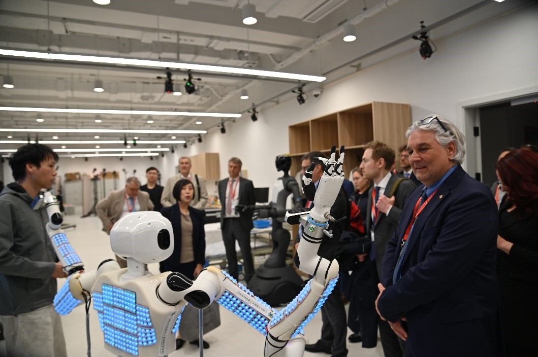 访问期间,代表团参观了同济大学上海自主智能无人系统科学中心,实地了解自主与感知、智能与涌现、协同与群智方面的最新研究成果。这些成果充分展示了同济大学在以无人系统为核心的人工智能基础理论与关键技术方面所取得的突破与创新。