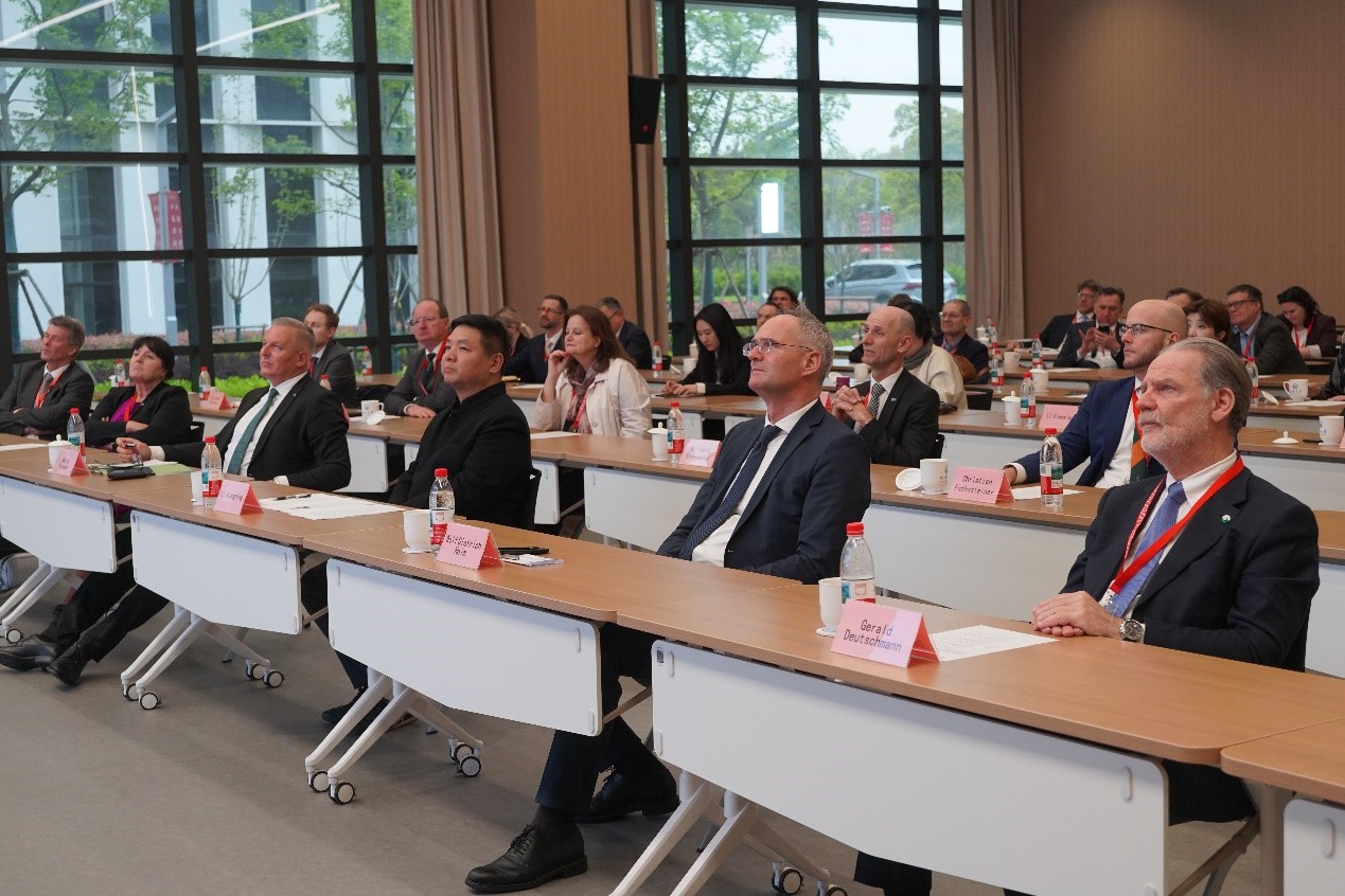该代表团是施蒂利亚州近年来规模最大、层级最高、覆盖面最广的访华代表团,涵盖州政府核心领导、议会高层、经济界领袖、高校校长及媒体代表。代表团成员还包括施蒂利亚州副州长科姆(Manuela Khom)、州议会议长多伊奇曼(Gerald Deutschmann)、州经济部长埃伦赫费尔(Wilibald Ehrenhöfer)、州交通部长霍尔泽(Claudia Holzer)等政府要员,以及格拉茨工业大学校长毕硕夫(Horst Bischof)。此外,来自施蒂利亚州商会、工业联合会、多个产业集群及主流媒体的核心代表也随团来访。奥地利驻华大使海沃福(Wolf Dietrich Heim)、驻上海总领事格梅伯森(Gerhard Alois Maynhardt)陪同访问。