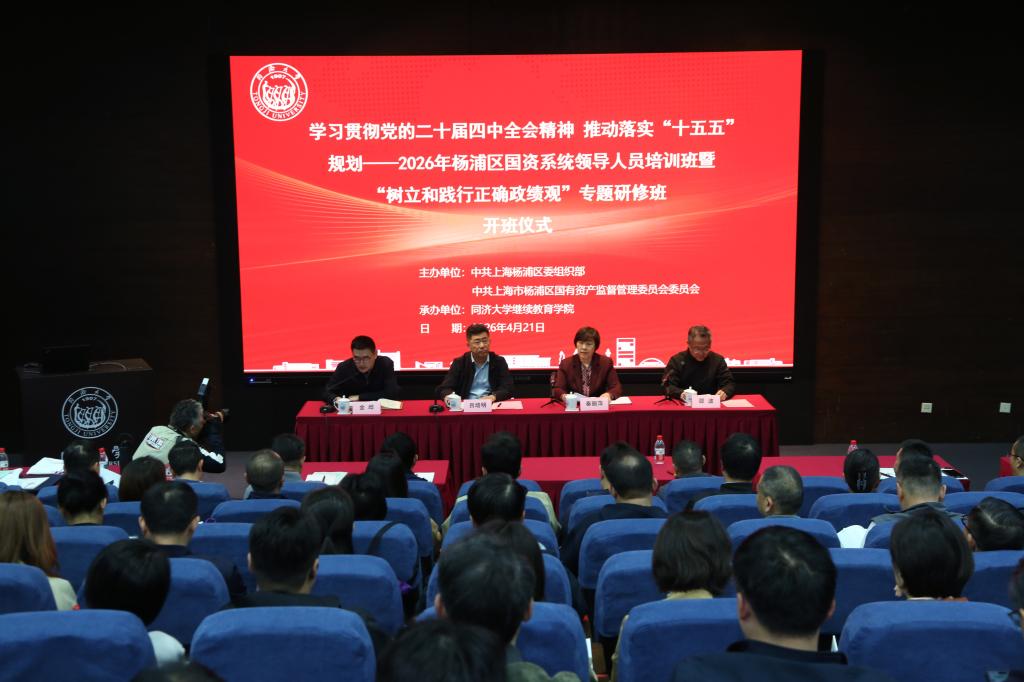 4月21日,“学习贯彻党的二十届四中全会精神,推动落实‘十五五’规划——2026年杨浦区国资系统领导人员培训班暨‘树立和践行正确政绩观’专题研修班”在同济大学开班。本次培训由杨浦区委组织部、杨浦区国资委党委主办,同济大学继续教育学院承办。