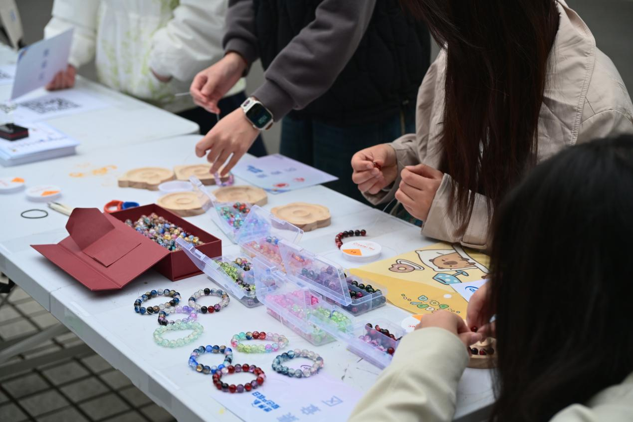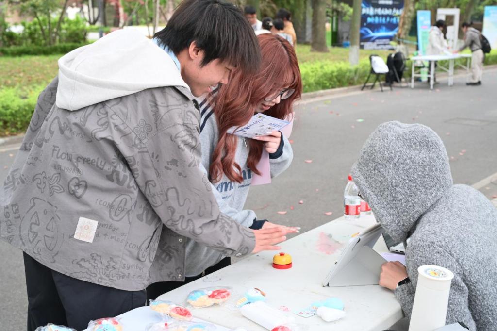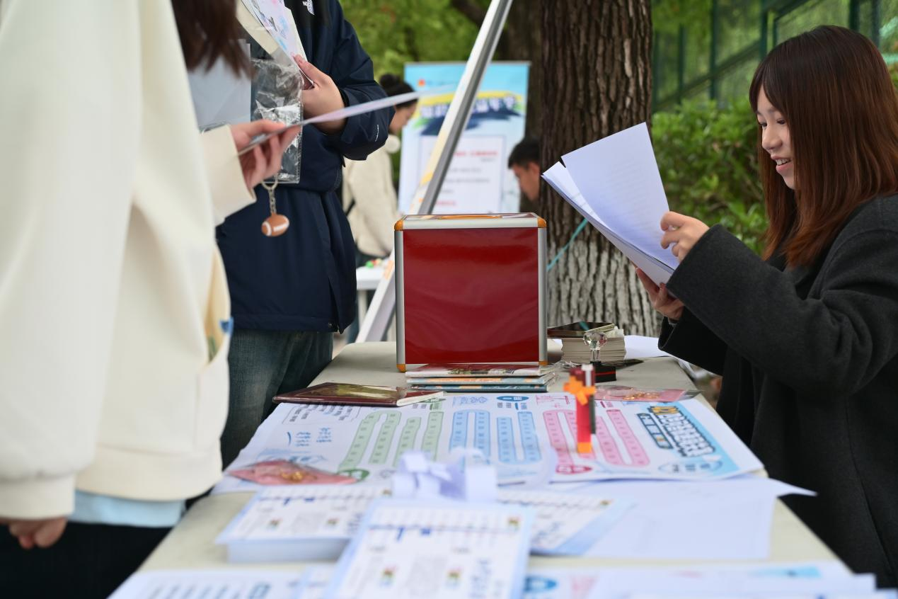 随后,师生们移步嘉年华展区,参观并体验各学院特色互动摊位。本次嘉年华延续经典集章的形式,现场设置16个特色互动摊位,将知产知识融入游戏闯关,让师生在沉浸式互动中学习知产规则、强化保护意识。上海国际知识产权学院从专业知识出发,设置3个摊位,通过正版辨识、飞镖闯关、链珠DIY等形式让参与者直观识别侵权行为,筑牢版权与商标保护意识,读懂知识产权从研发到转化的全链条。复旦大学法学院通过投壶、找茬、配对等形式,聚焦AI生成内容侵权边界,强化案例与法条结合能力,提升数字时代知产风险防范意识。上海交通大学凯原法学院设置连续答题闯关、近似商标比对辨别两项游戏,提升参与者商标近似判断、基础知产规则运用能力。华东师范大学法学院设置30秒内辨识同品类商标的游戏,普及商标多元化保护规则,让参与者理解商标不仅限于名称,同样覆盖声音、形状、包装等多重维度。上海财经大学法学院让参与者朗读知产主题绕口令、抢答版权知识题目,以轻松形式记忆版权核心概念,普及文化创意、数字内容版权保护规则。同济大学图书馆采用“图案拼图+元素识别”的趣味形式,让参与者在轻松互动中直观认识知识产权相关标识与元素,快速建立对知识产权的基础认知。同济大学研究生会用盲盒抽题作答、现场绘制商标图标的方式提升趣味性,普及生活中常见商标、版权、专利常识,拉近了知识产权与日常学习生活的距离。建筑与城市规划学院让参与者辨别真实建筑与AI生成建筑,有助于厘清数字时代建筑设计知识产权保护边界。土木工程学院设置四色问答极速闯关赛,融入土木元素和知产标识,强化智能建造与知产保护的认知。外国语学院让参与者速读复述外语知产段落、翻译与解释多语种知产术语,拓宽国际知识产权视野,助力全球化知产保护交流。法学院设置投球答题挑战,以竞技的形式深化了参与者对法条规定和侵权认定的理解。测绘与地理信息学院用全景图片定位中国地点,识别地理标志产品,普及地理标志相关知识,强化专业领域知产保护认知。国际足球学院借鉴足球VAR裁判模式,红牌和黄牌分别对应侵权和合理使用,在活动中加强参与者对知产侵权的认识与辨别能力。“果汁”知产力法律志愿服务队以“抢答—对决”的形式为主,用竞赛的方式强化知产记忆,让知识在趣味答题中深入人心。