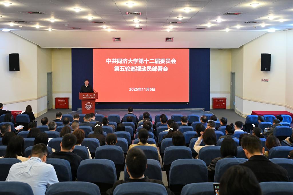 11月5日上午,中共同济大学第十二届委员会第五轮巡视动员部署会在四平路校区召开。校党委书记、巡视工作领导小组组长郑庆华出席并讲话。校党委常务副书记、巡视工作领导小组副组长朱小杰主持会议。党委组织部宣布巡视组名单和任务分工决定。第一巡视组组长李静茹代表巡视组通报巡视任务和工作安排。巡视组全体成员、被巡视单位党政领导班子等参加会议。