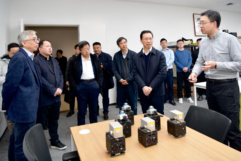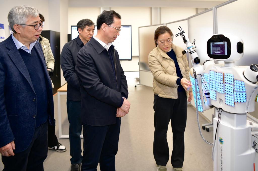 12月17日,校党委书记、中国工程院院士郑庆华率队来到张江基地,调研同济大学上海自主智能无人系统科学中心(以下简称“科学中心”)、工程智能研究院、同济大学智算中心等建设情况,并与科学中心班子成员及入驻科研团队代表进行座谈交流。副校长、中国工程院院士童小华,副校长赵宪忠,党委办公室、发展规划与学科建设部、科学技术研究院、信息化办公室、后勤管理与保障处、资产与实验室管理处等部门负责人参加。