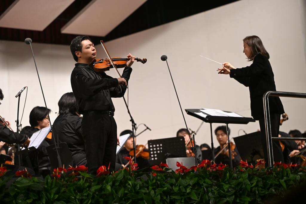 管弦乐合奏《花好月圆》《法兰多拉舞曲》《乡村骑士》《波莱罗舞曲》《电闪雷鸣波尔卡》,小提琴协奏曲《梁祝》……管弦声声诉真情,一曲曲悦耳动听的经典旋律动人心弦,将现场听众带入到欢乐喜庆的迎接新年氛围中。一曲终了,掌声四起。