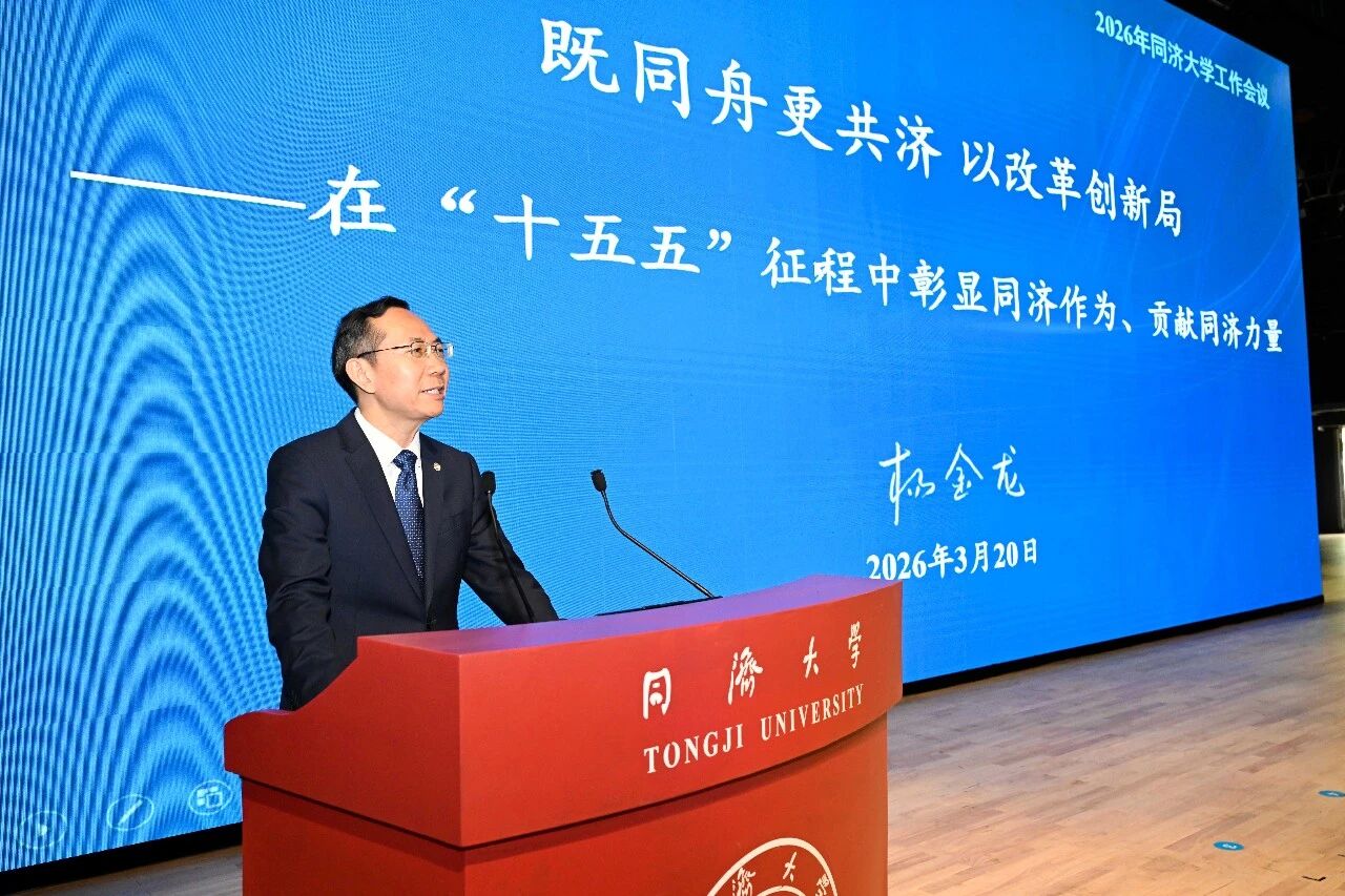 排出“时间表”,绘好“路线图”,下达“任务书”。3月20日下午,2026年同济大学工作会议召开,校党委书记、中国工程院院士郑庆华讲话,校长、中国科学院院士杨金龙部署今年学校重点工作。校党委常务副书记朱小杰主持会议。主会场设在四平路校区大礼堂,在嘉定校区济人楼设分会场。