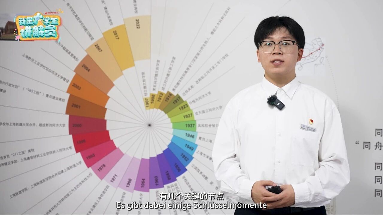 近日,“我是大学生讲解员——2025年全国高校大学生场馆讲解风采展示活动”正能量作品公布,同济大学作品《场馆育人的青春回响:德语讲述同济奋斗基因》入选。该作品由中德工程学院立足对德合作传统,依托学校劳动教育实践项目平台而打造。