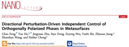 物理科学与工程学院王占山和程鑫彬团队提出正交偏振相位解耦新方法,成果发表于《纳米快报》并入选封面