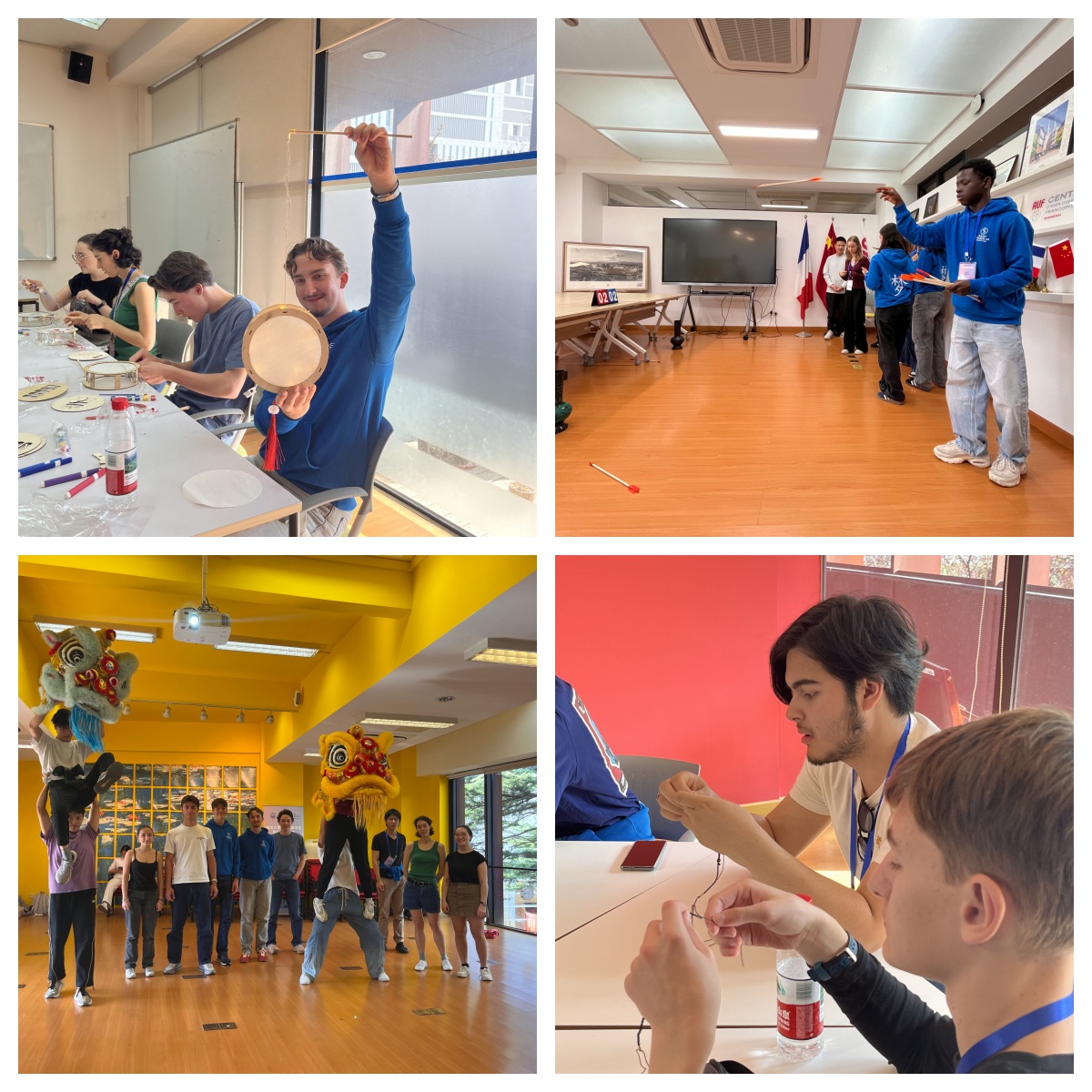 在文化体验方面,法国师生聆听了中法文化差异讲座,深入了解中法两国在历史、艺术、饮食、社交礼仪等多个维度的文化差异,从而对中国文化有了更全面且深刻的认识。此外,法国学生还在同济大学学生龙狮运动协会的指导下,亲自体验了传统的舞龙舞狮运动,并参与了投壶、制作灯笼等文化手工活动。