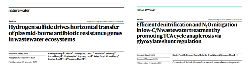 近日,同济大学环境科学与工程学院陈银广教授团队在环境微生物代谢调控领域取得重要突破,在Nature子刊《自然-水》(Nature Water)连续发表两项关于污水处理中生态风险与绿色工艺的创新研究成果,分别揭示了抗生素抗性基因传播的内源驱动机制,并提出了低碳氮比污水高效脱氮的代谢调控新策略。
