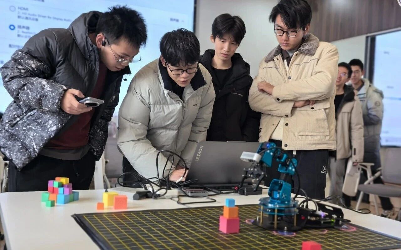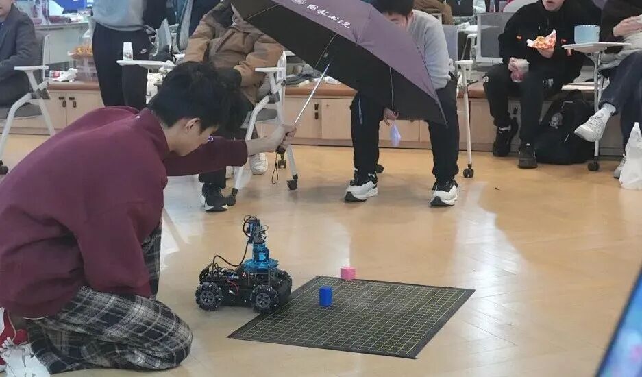 近日,在国豪书院西南楼4002活动室内,40余名大二学子组成了八支队伍,他们通过自主搭建的机器人和现场编程能力,展开了一场高水平的“机器人抓取物块挑战赛”。这场比赛不仅是《机器人结构与动力学控制》课程的期末“考卷”,更是项目制学习(PBL)成果的精彩展示。