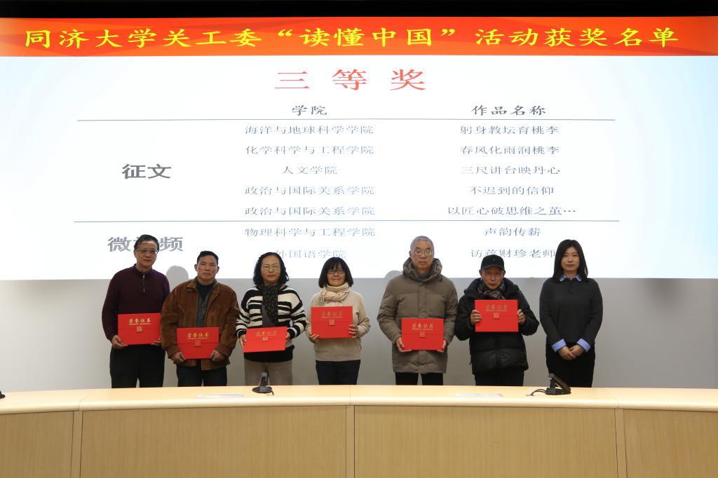 会议对2025年度“读懂中国”活动获奖的18个学院进行表彰。其中,同济大学上报教育部关工委的8项作品有6项获奖:土木工程学院《数字化的执牛耳者》获最佳征文,建筑与城市规划学院《古城卫士》获最佳微视频,医学院《蓝盔下的生命卫士》、测绘与地理信息学院《大地的见证》、生命科学与技术学院《电镜映照赤子心》获优秀征文,电子与信息工程学院《驾驭新能源》获优秀微视频。同济大学获奖数在全国高校中名列前茅,校关工委也再次获得优秀组织奖。与会者们现场观摩了《古城卫士》微视频。