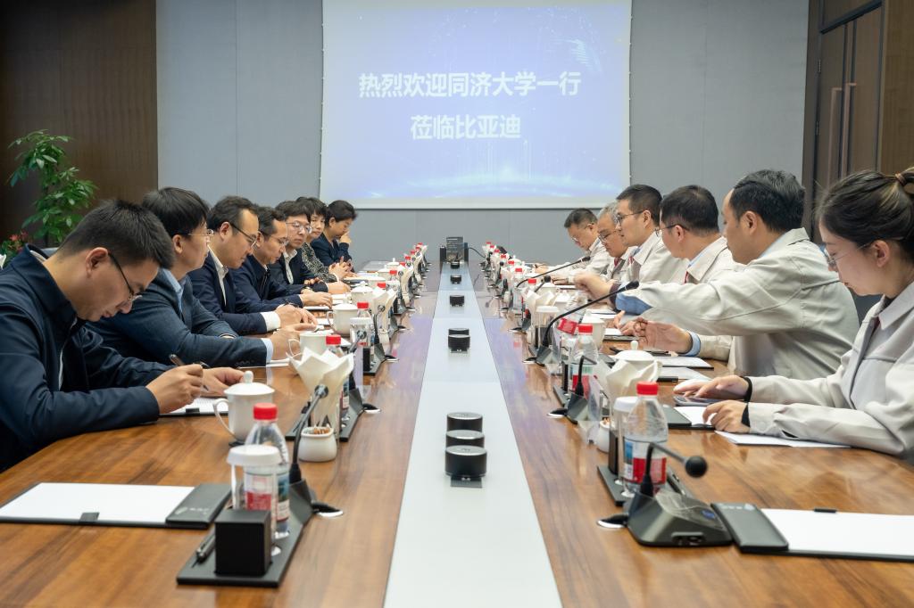 比亚迪集团人力资源处总经理叶子、汽车工程研究院产品技术规划中心总监刘坚坚、集团人力资源处招聘总监余昌祎及相关部门负责人,同济大学政策研究室、党委学生工作部、学生就业指导中心、校友与基金工作办公室、汽车与能源学院等相关负责人参加交流。