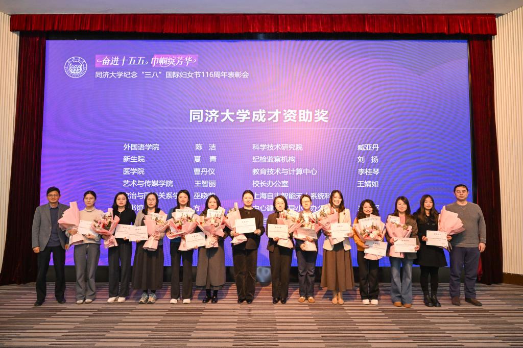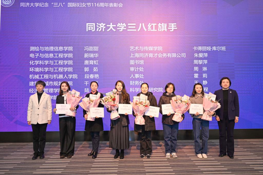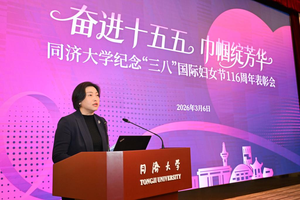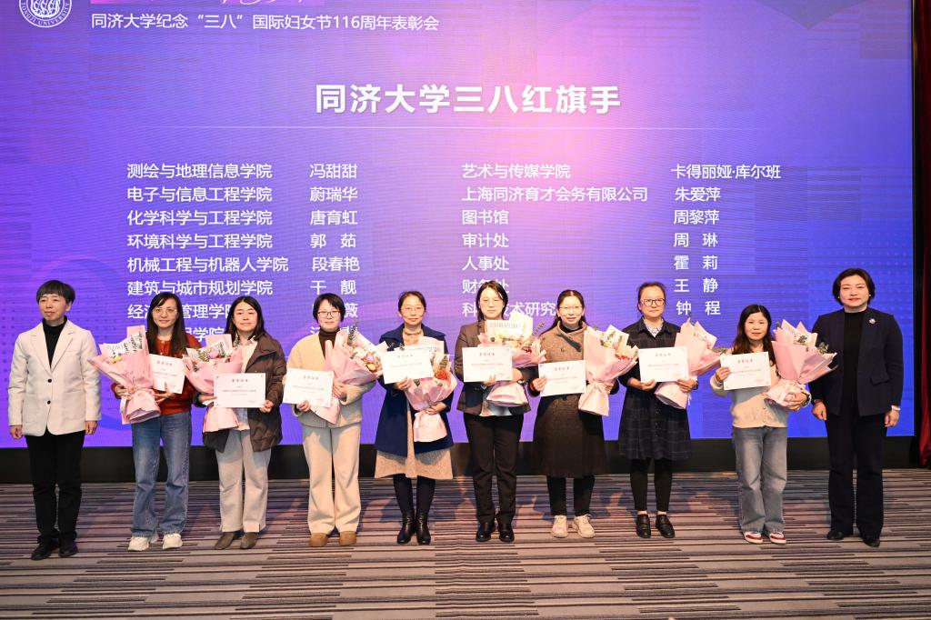 3月6日,同济大学纪念“三八”国际妇女节116周年暨“奋进‘十五五’巾帼绽芳华”表彰会举行。会议表彰了2025年度获得各级各类荣誉的先进个人和集体。校党委副书记曹静出席表彰会并致辞。受到表彰的女教职工个人和集体代表、校妇委委员及相关职能部门负责人、各单位妇女工作分管领导及妇女干部代表和女教师、学生代表等参加大会。