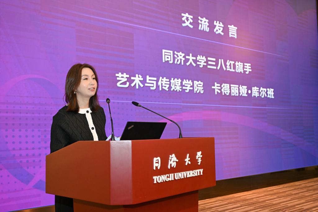 在交流发言环节,上海市三八红旗手标兵提名奖获得者、同济大学国家海底科学观测系统项目办公室杨群慧教授从心怀家国、不畏艰险,下潜深海开展海洋科考;敢为人先、攻坚破难,投身海底科学观测网建设;潜心育人、培根铸魂,培养海洋事业接班人三个方面讲述了“我和海洋的故事”。上海市教育系统第四届最美家庭代表建筑与城市规划学院杨春侠教授分享了家庭建设的心得体会,求同存异和谐相处的家庭之道、互相扶持分工协作的夫妻之道、倾听理解耐心陪伴的母子之道,以及“小满即圆满”的人生态度,充满温暖和智慧。校三八红旗手、艺术与传媒学院卡得丽娅·库尔班老师分享了自己的工作体会,在舞台指挥中传递同济精神与时代脉搏的同频共振,在育人中将艺术与传媒学院的专业特色与学校“扎根中国大地办大学”的理念相结合,奏响属于新时代同济女性的乐章。校三八红旗集体代表、校医院大内科护理组代表季思思介绍了团队17位姐妹用女性独有的细腻、坚韧与温柔,打磨专业技能,坚守初心使命,用专业的照护守护师生健康,用温暖的陪伴传递医者仁心的事迹。
