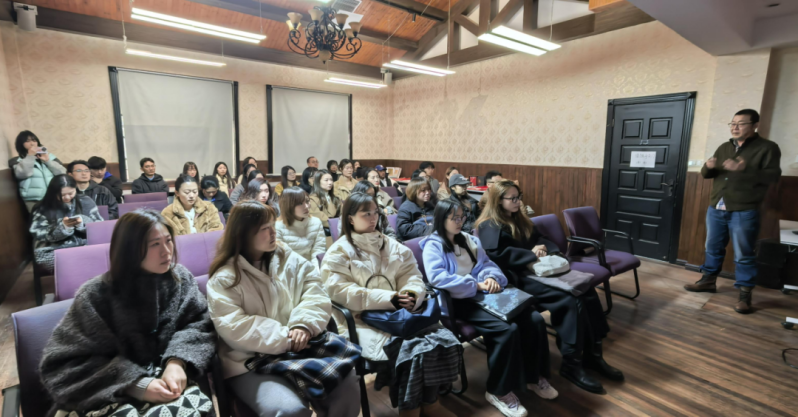随后,“数字一大·初心之旅”策划总监宋森为大家带来专题讲座,从创制背景、技术挑战、内容把关到运营模式,全景式揭秘了这部红色VR大空间作品诞生背后的故事。相关负责人表示,对于长期研习文化艺术的学生而言,此次考察最直接的冲击来自技术带来的沉浸感,同学们不仅完成了从体验到认知的升华,更在与主创团队的交流中,理解了理论如何落地为可触摸的产业方案。