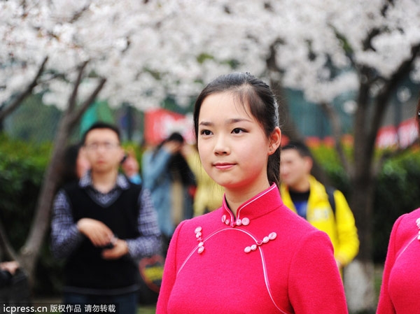 2013年3月22日,上海同济大学四平校区,“美丽中国、旗袍文化校园行”活动在樱花大道上举行,来自静安区南西街道的海派旗袍沙龙的老年会员与女大学生同穿旗袍秀出女性魅力,成为樱花下的一道美丽风景线。