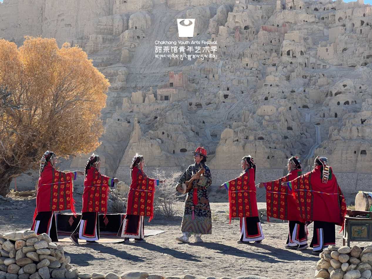 藏族音乐人在阿里古格王宫遗址演绎民歌《心仪的舞蹈》,以果沃琴弹唱对自然的敬畏之心。