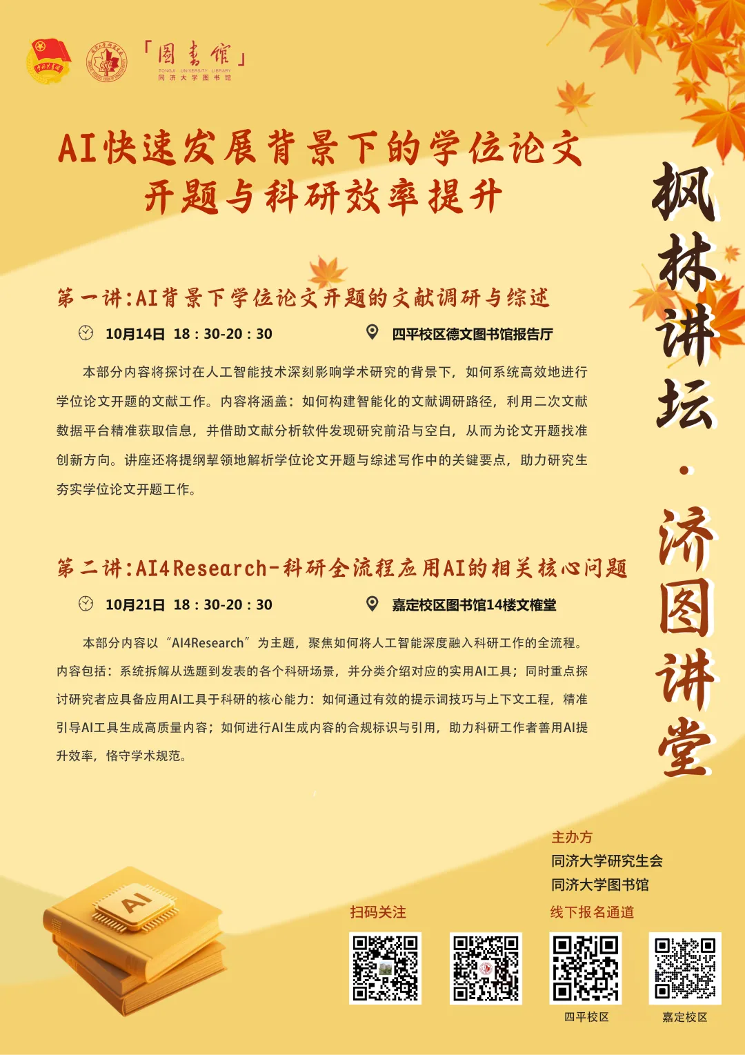 (10月14日、21日)AI快速发展背景下的学位论文开题与科研效率提升